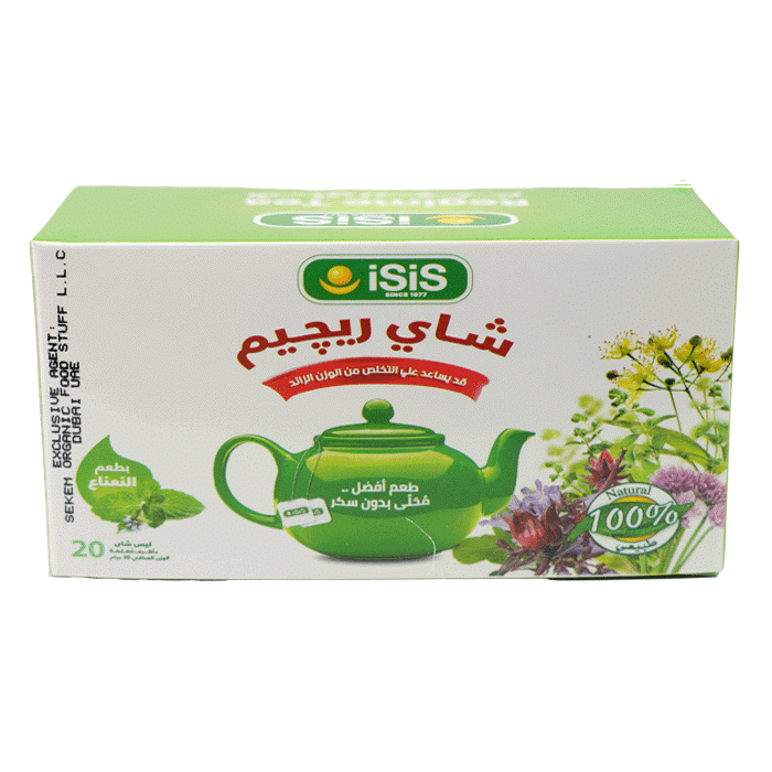شاى رجيم بنكهة النعناع الطبيعية يساعد على تعزيز عملية الهضم وتنشيط الجسم، خيار مثالي لأولئك الذين يتبعون نظامًا غذائيًا صحيًا.